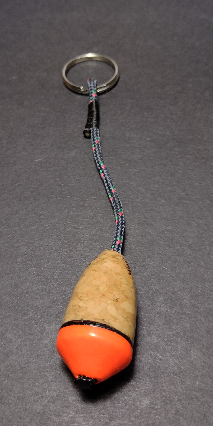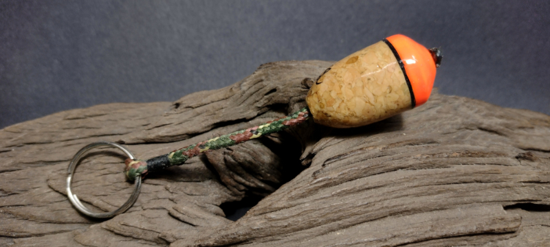 The keyring is made using the same cork, paint and lacquer as all my other floats and finished to the same high standards. The cord attaching the stainless steel split ring may vary from the photos