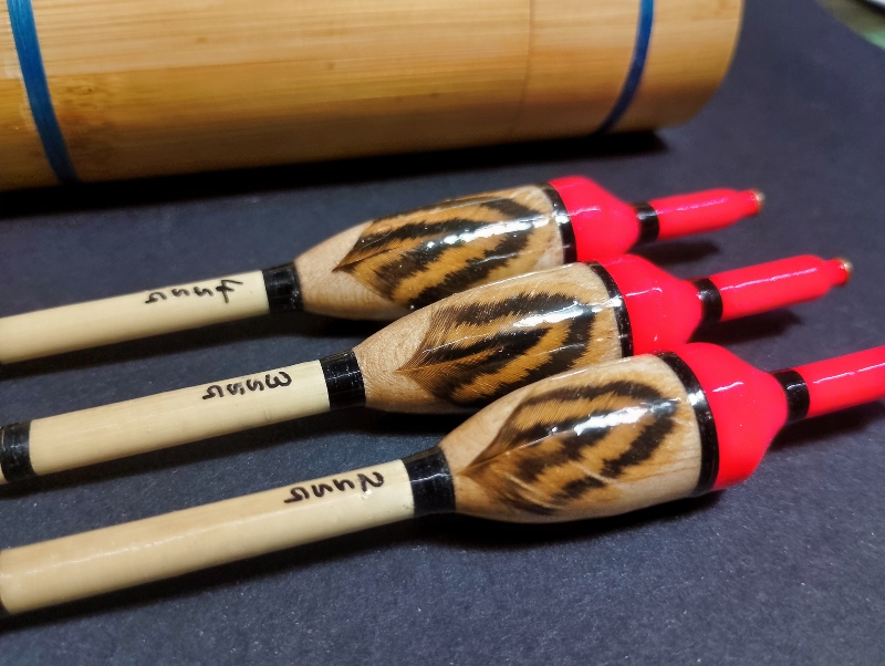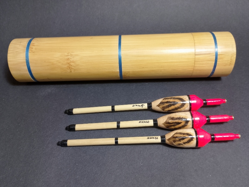 Limited-Edition Feather-Inlaid Inline Perch Bob Set in Bamboo Tube — Traditional Silk-Whipped,