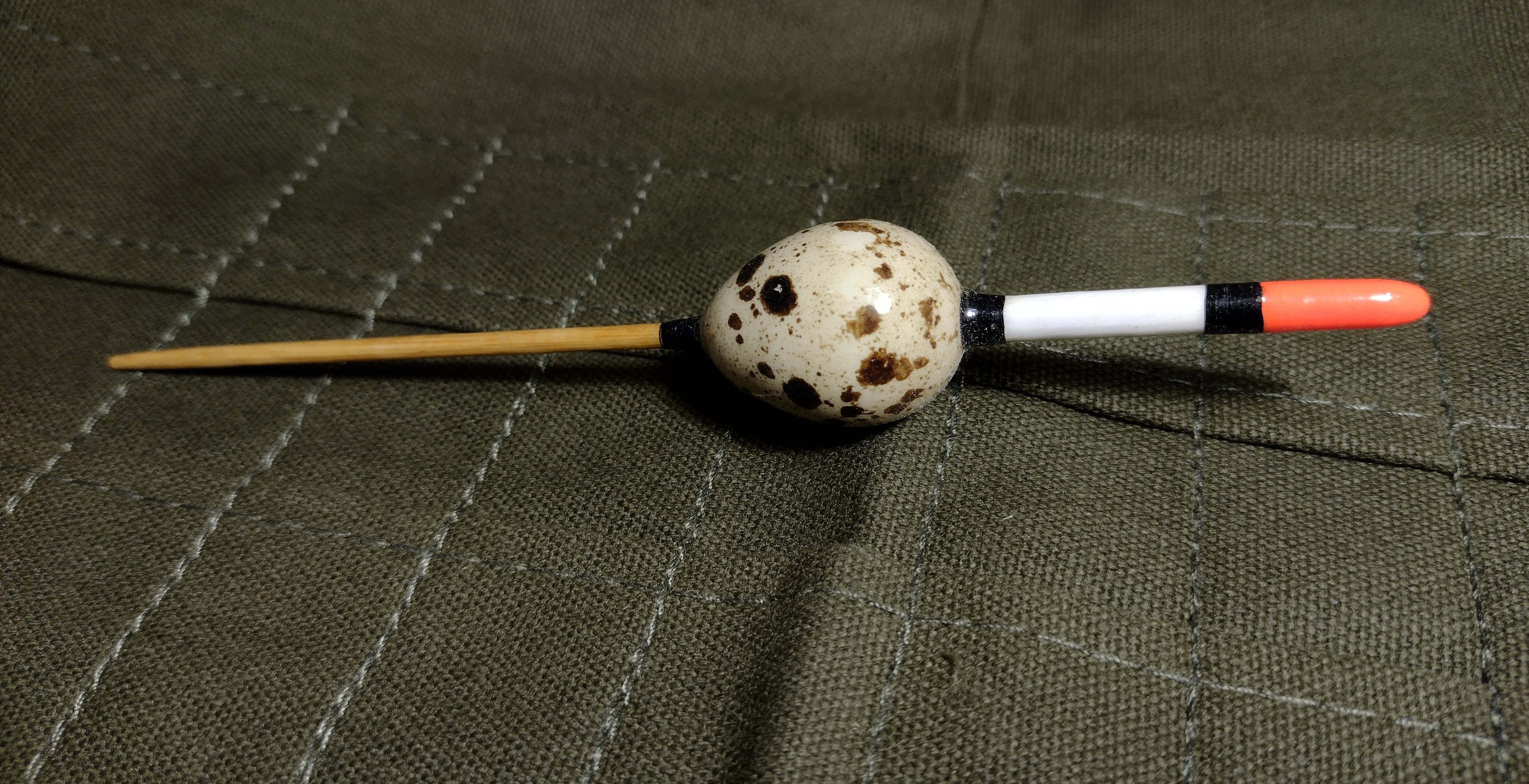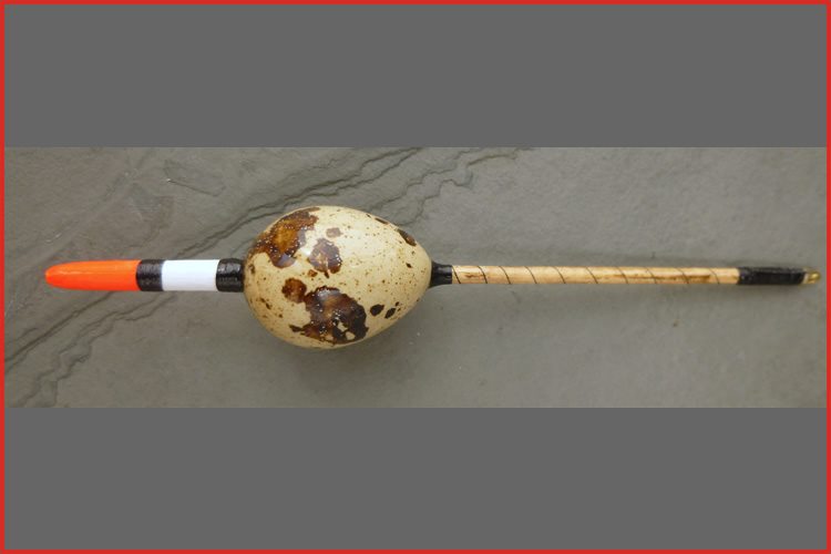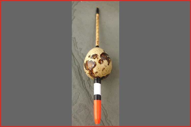 | Materials: | The float is made from a quails egg with a quill sight tip on a cane stem. |